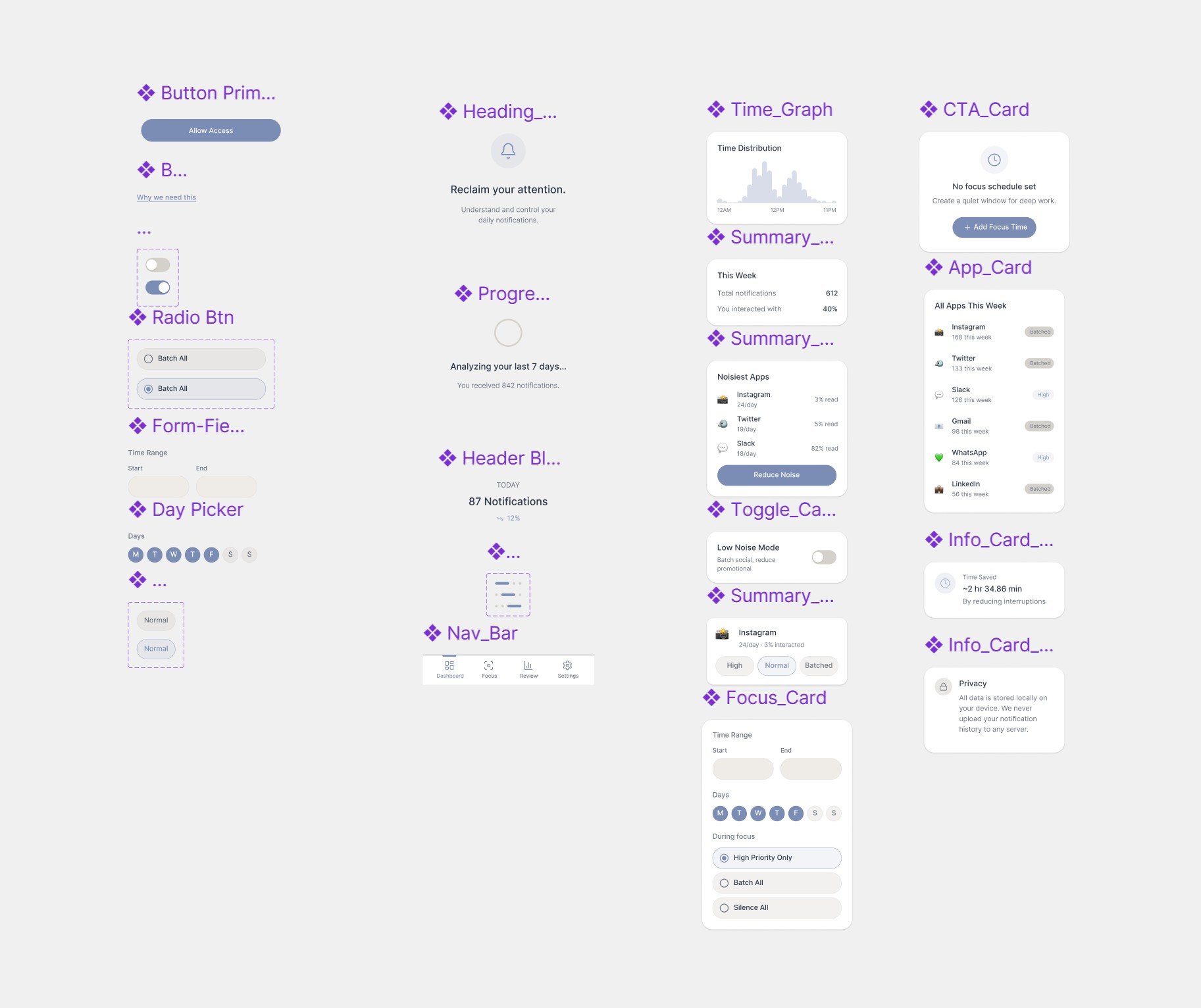 However, it was up to me to extract and organize all of the individual design elements. After exporting the Make file to a Design file I was able to isolate key components and the tokens they were built from.