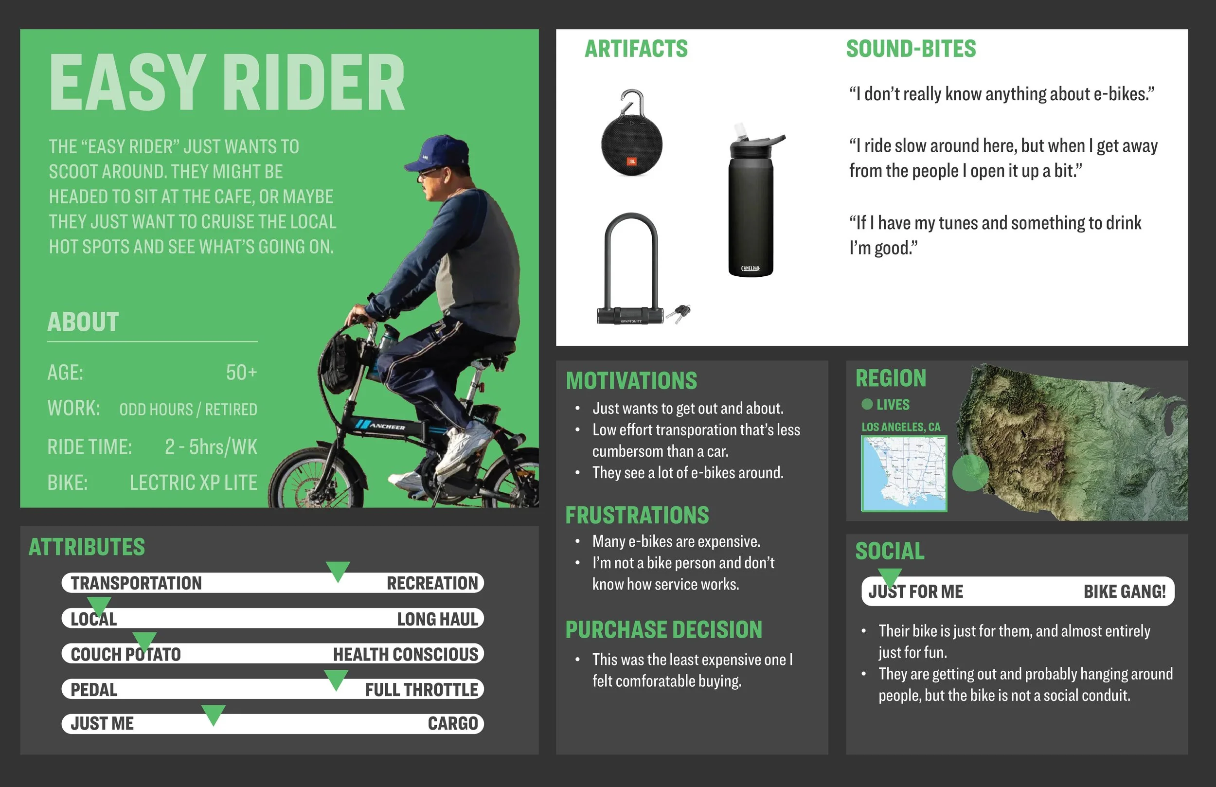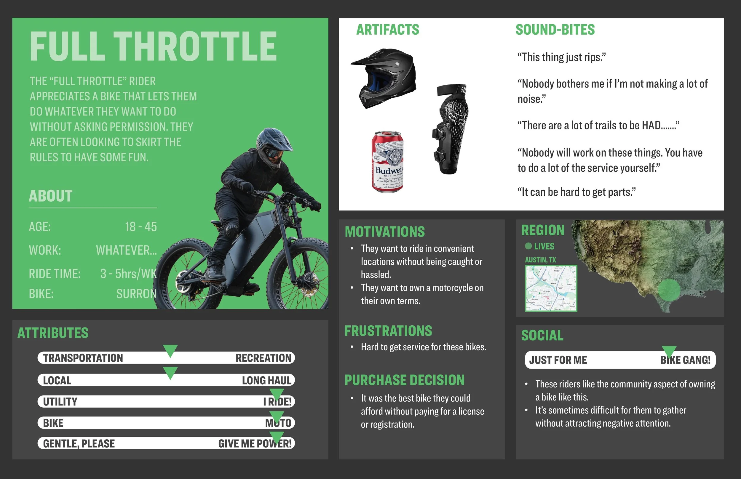 Who did we interview?The riders below (and many others) How did we begin to categorize these riders?What are the “archetypal” groups? Where do these archetypes sit in the general rider landscape? Archetypes we decided to focus on: Archetypes on the periphery that we need to remain aware of: